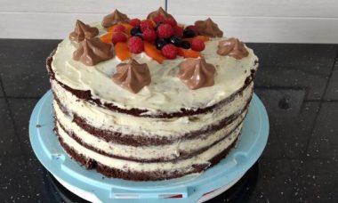 Tort festiv de ciocolata cu fructe. Arata minunat si este delicios.