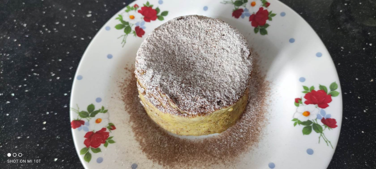 Prajitura e gata. Eu am rasturnat-o pe o farfurie si am pudrat-o cu cacao si zahar pudra.